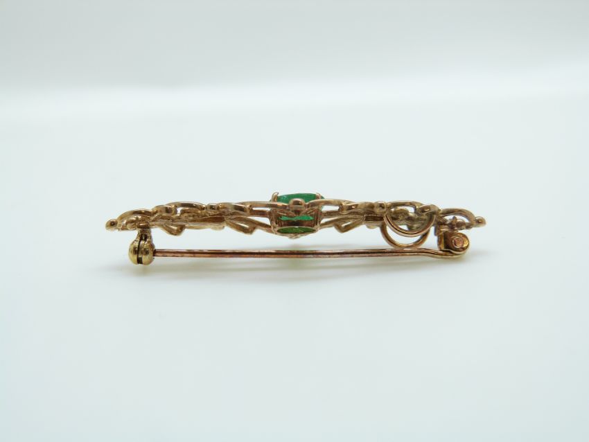 A 9ct gold brooch set with an oval emerald measuring approximately 0.75ct, 4.5cm
