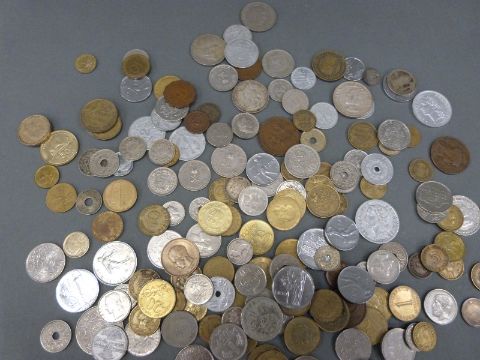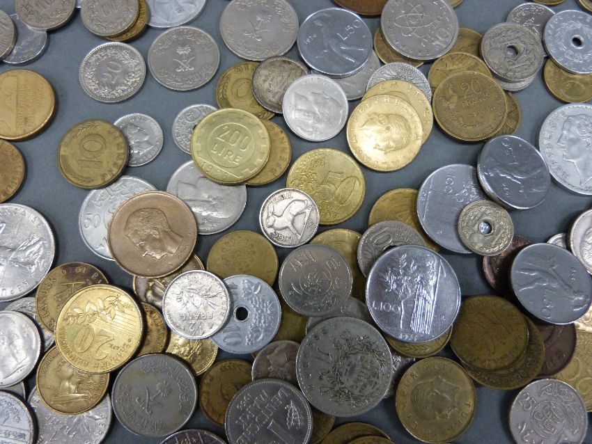 A collection of overseas largely 20thC pre-Euro coins including WWII era France, Germany, South Africa, Middle East, Irish Free State etc, includes small silver content, Kennedy half dollar, 1937 Honduras Lempira etc