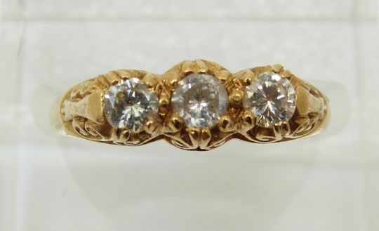 An 18ct gold ring set with three diamonds, 4.1g (size M)