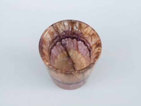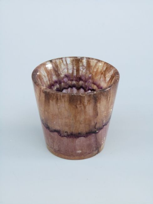 A 19thC blue john tot cup, 3.7cm tall