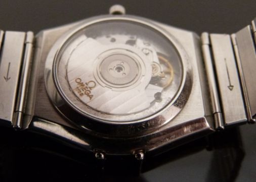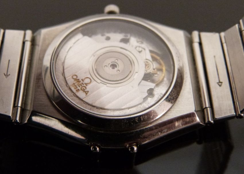 Omega Constellation stainless steel gentleman's automatic chronometer wristwatch with date aperture, luminous blued hands, dot markers to the silvered face and Roman numerals to the chrome bezel, on stainless steel bracelet, case diameter 35mm, in original box with paperwork