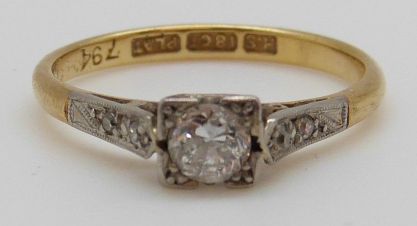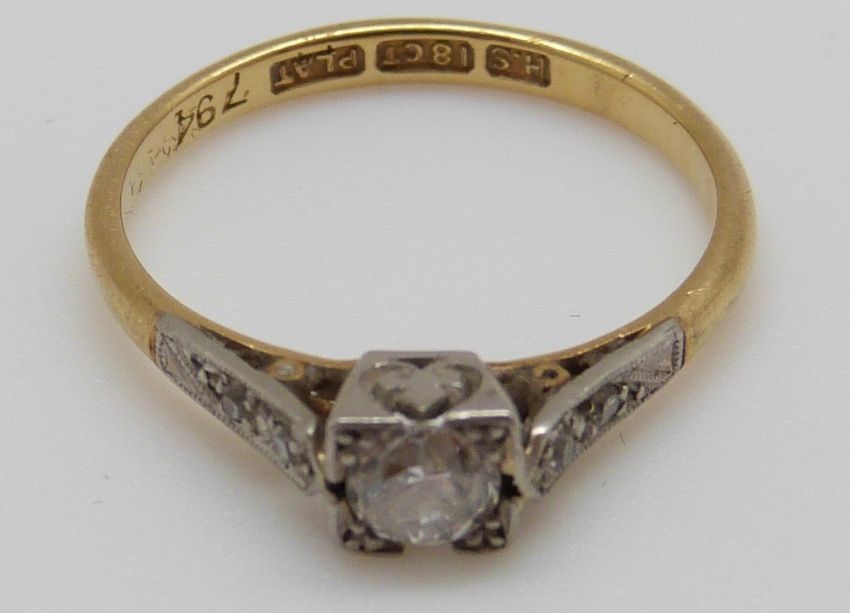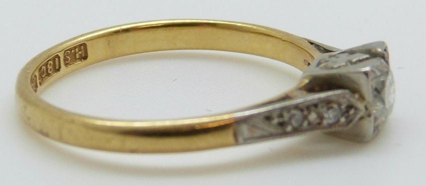 An 18ct gold ring set with a diamond of approximately 0.25ct in a platinum setting (size L)