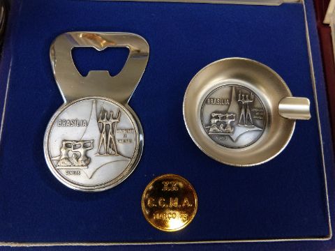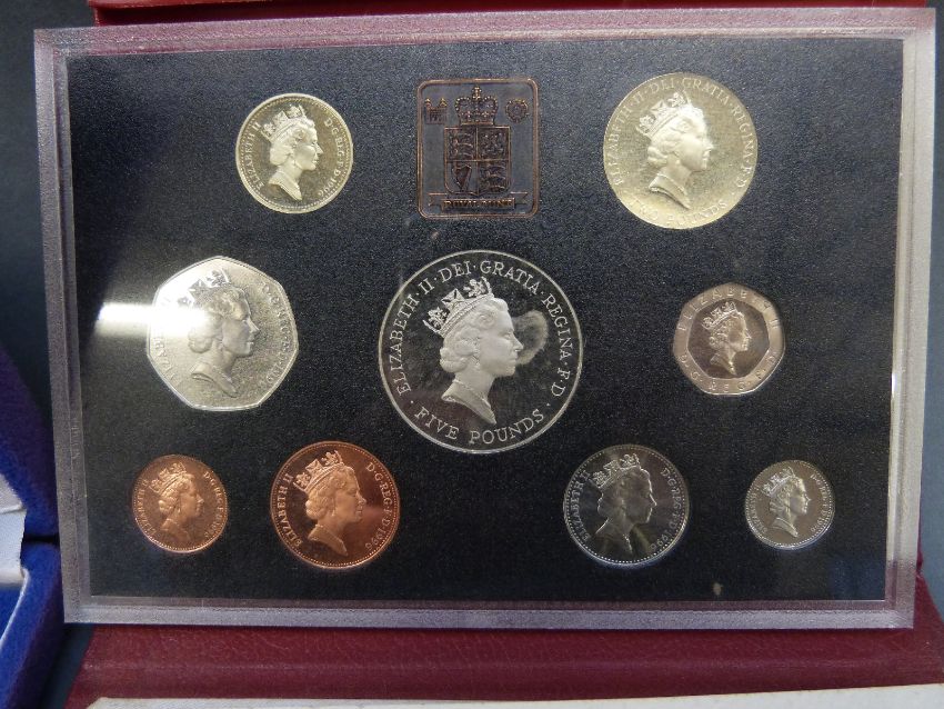 1996 UK deluxe cased proof coin set, 25 years of decimalisation together with 1971 USA proof set and a Brasilia Monumento Gandango set, with a folding white metal beaker