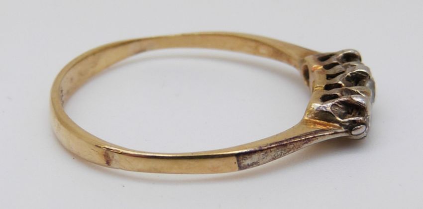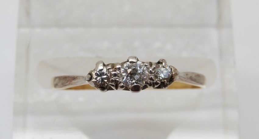 An 18ct gold ring set with three diamonds, 1.73g (size N)