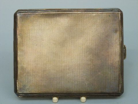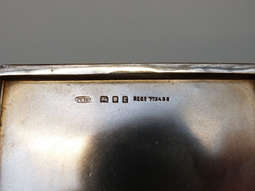 A hallmarked silver cigarette case with engine turned decoration, London 1932, weight 118g