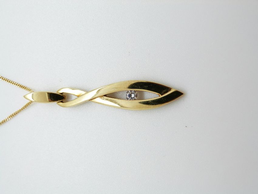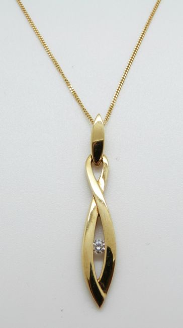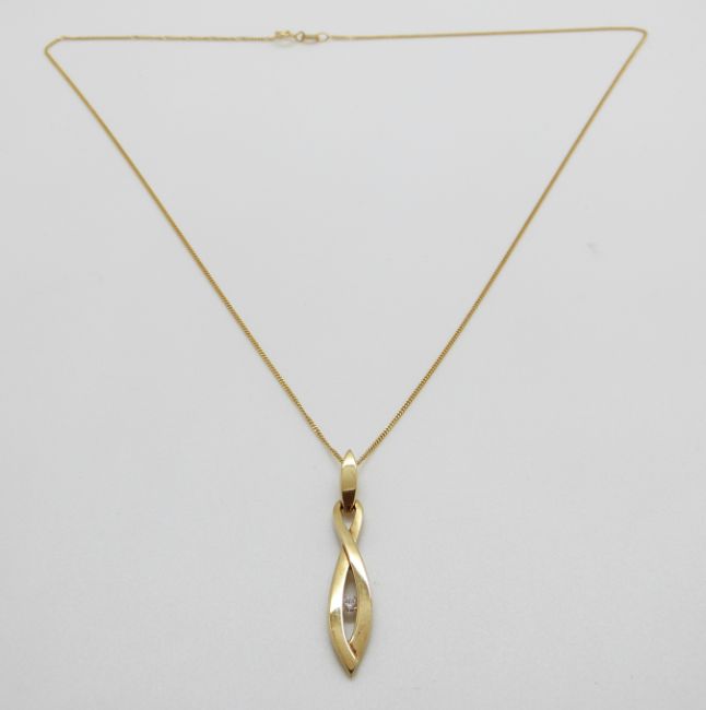 A 9ct gold necklace set with a cubic zirconia, 3.4g