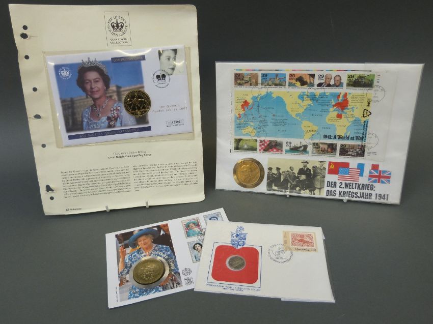 A small amateur collection of sundry stamps, coin and stamp covers etc