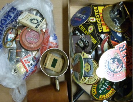 A quantity of breweriana including empty Bell's whisky, pump signs, glasses, tankards etc
