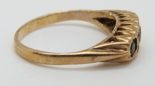 A 9ct gold ring set with sapphires and diamonds (size J)
