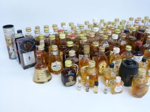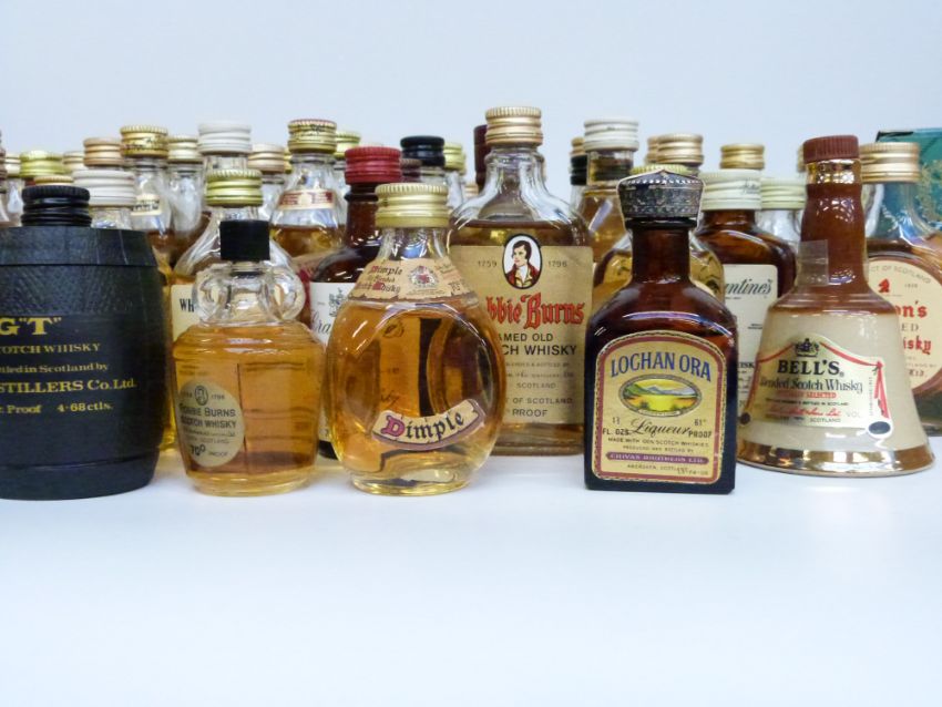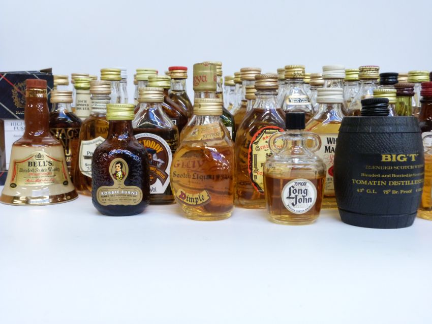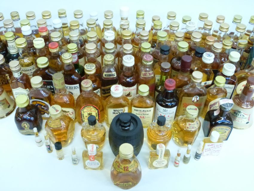 Approximately 100 whisky miniatures including Dimple, Johnnie Walker, Hankey Bannister, Langs, Buchanan, Deerstalker, Crawfords, Haig etc