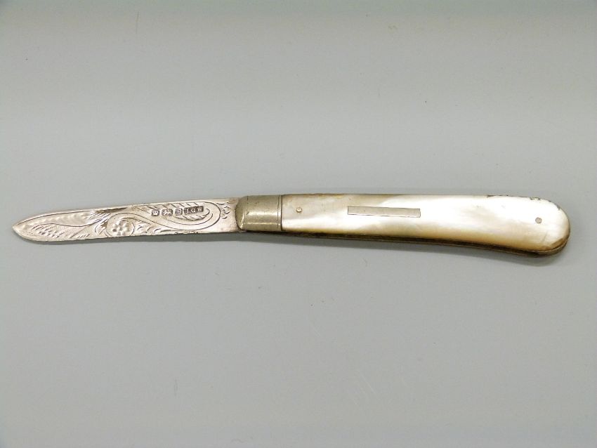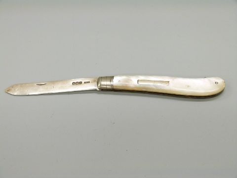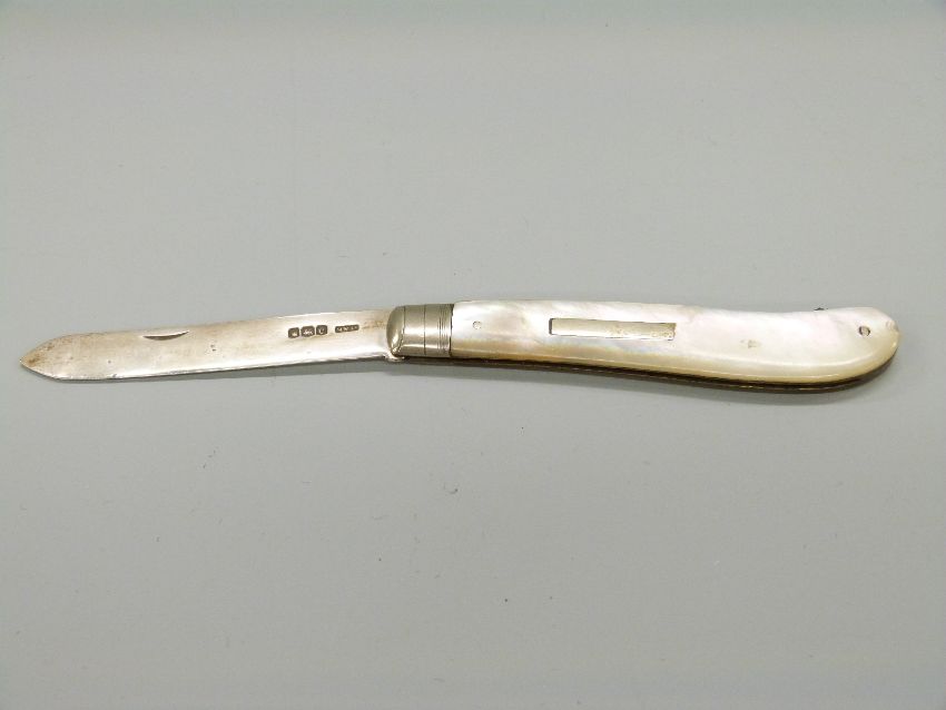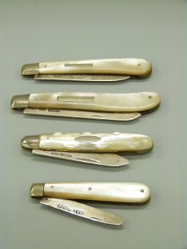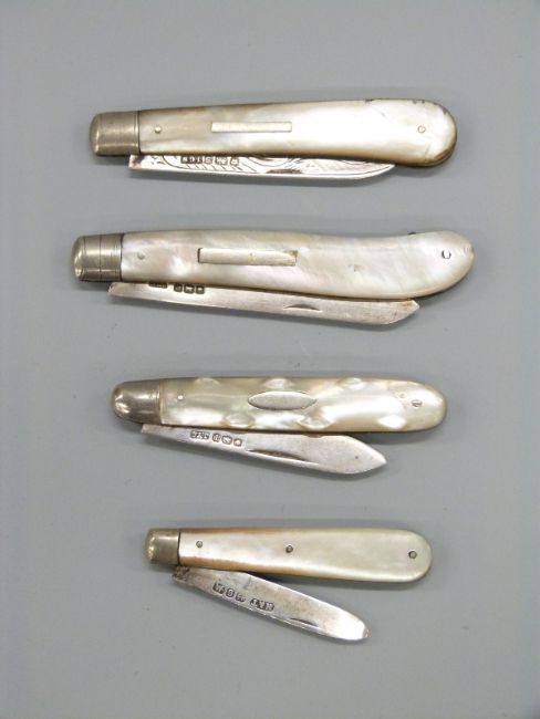 Four mother of pearl handled, silver bladed fruit knives with Birmingham and Sheffield hallmarks