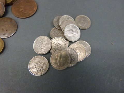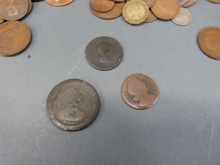 A collection of sundry UK coinage includes William IV halfpenny, poor but some detail and cartwheel George III