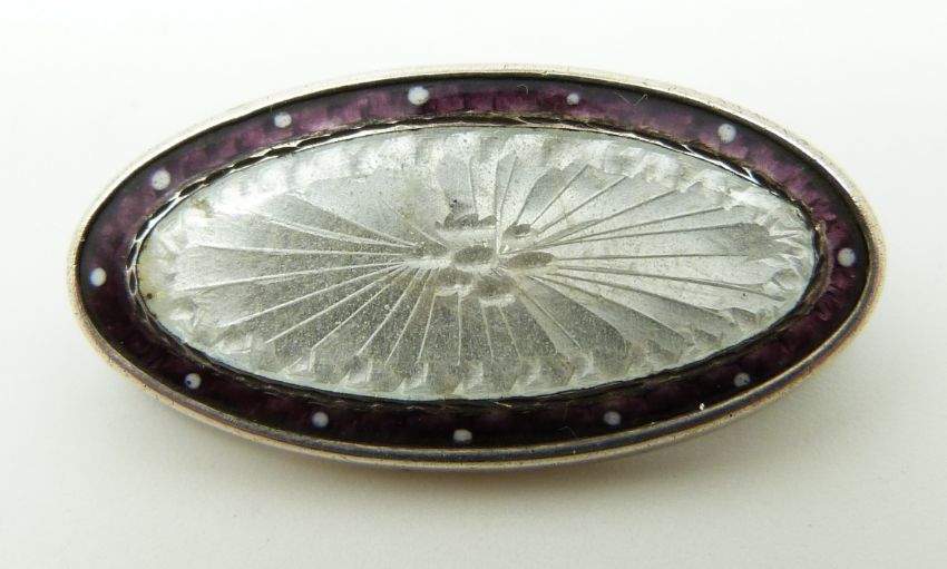 A silver brooch set with enamel