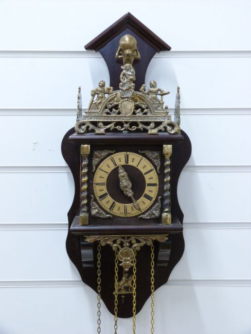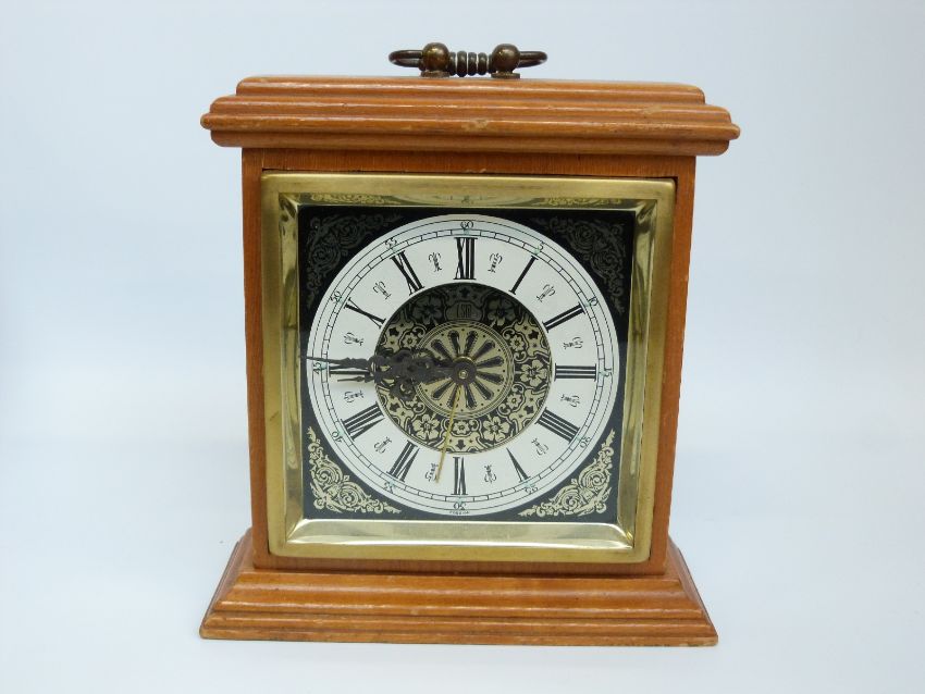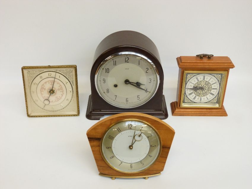 A collection of clocks to include a Dutch "stoel klok", an Enfield bakelite mantel example and three others including Metamec with moon hands