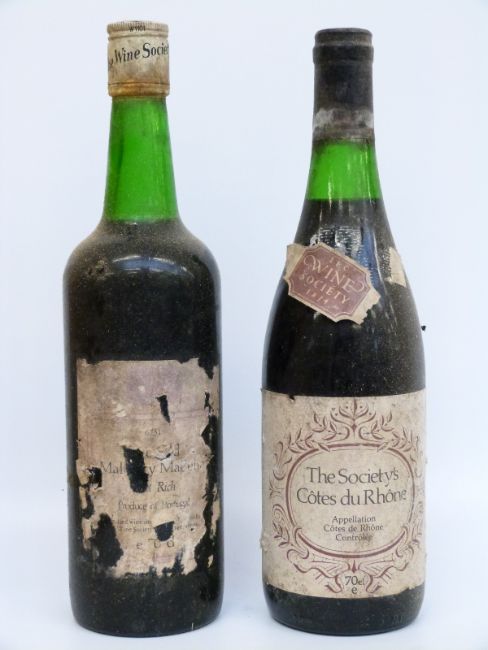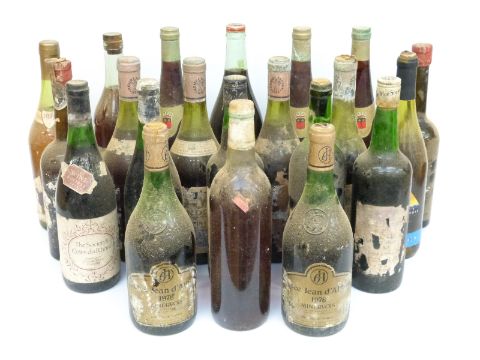 Twenty one bottles of vintage wine including Cuvee Jean d'Albery 1978 Minervois x2, Jura 1979 (part label), Henri Maire wine x3, Wine Society sherry etc