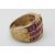 A 9ct gold ring set with square rubies and diamonds in a buckle design, (size N)