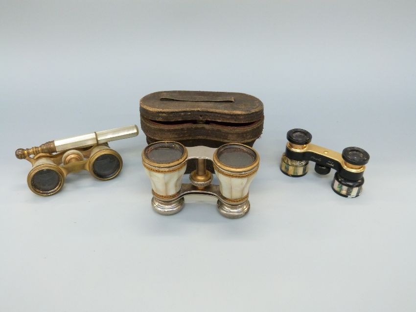 Three pairs of mother of pearl opera glasses
