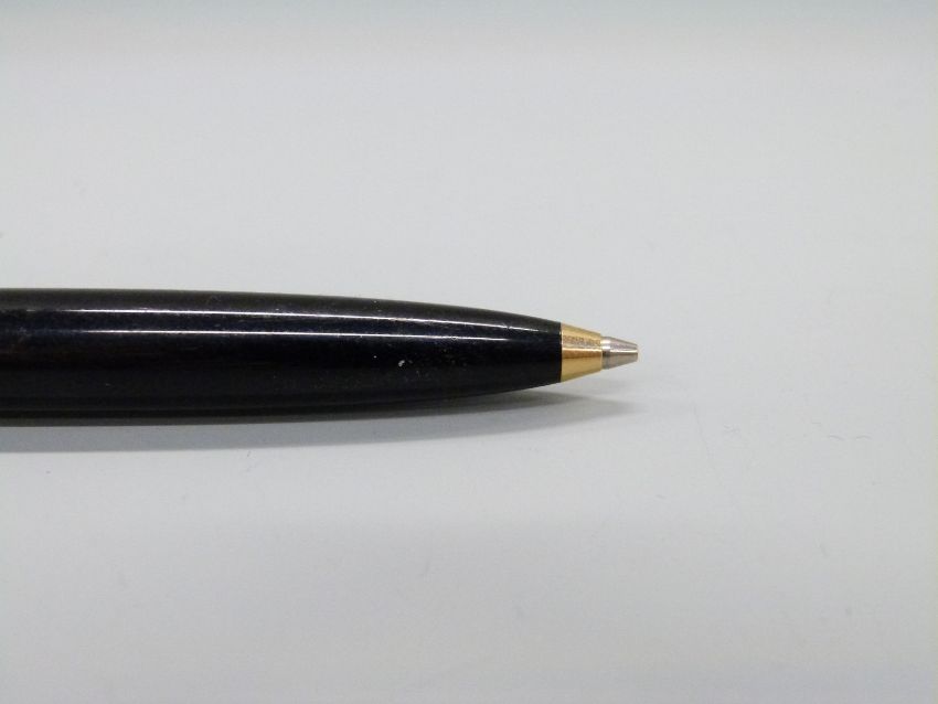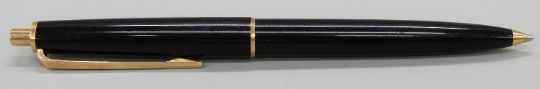 Montblanc 250 propelling pencil with black resin barrel and cap, gold platedfittings and white star pusher, NVSN, 13.5cm long