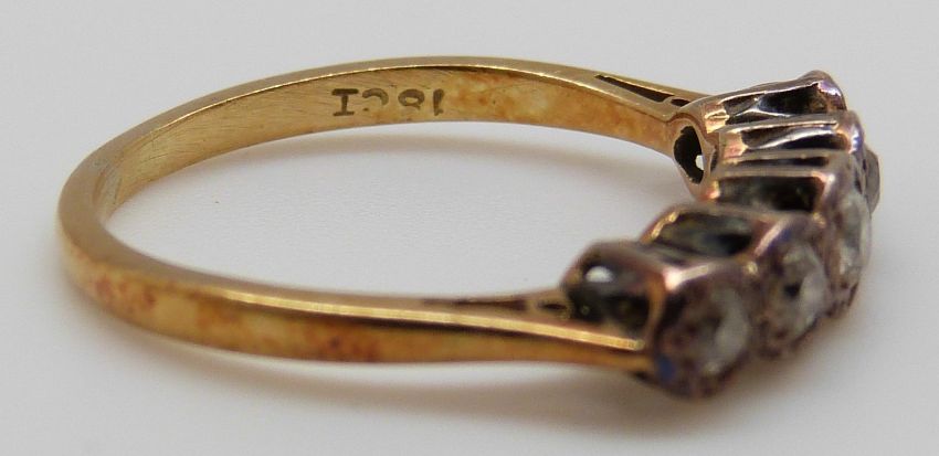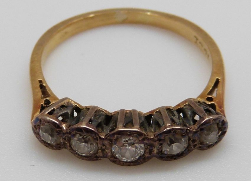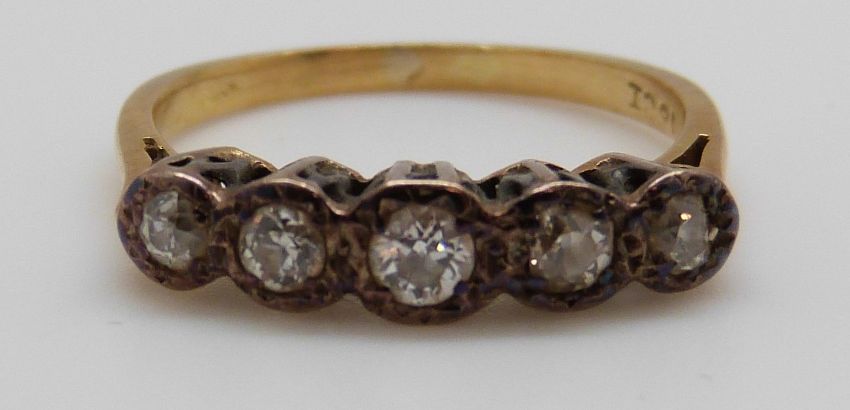 An 18ct white gold ring set with five diamonds, 3g (size N)