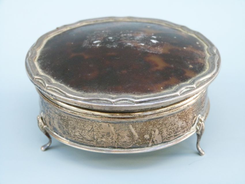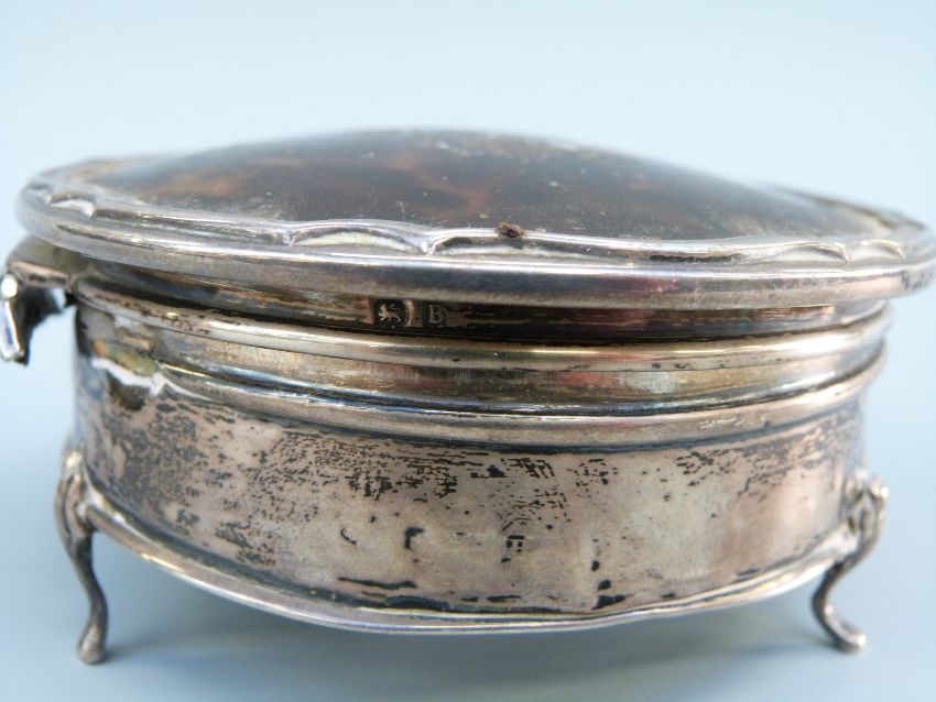 A George V hallmarked silver tortoiseshell lidded dressing table pot, Birmingham 1926, maker's mark rubbed, diameter 9cm