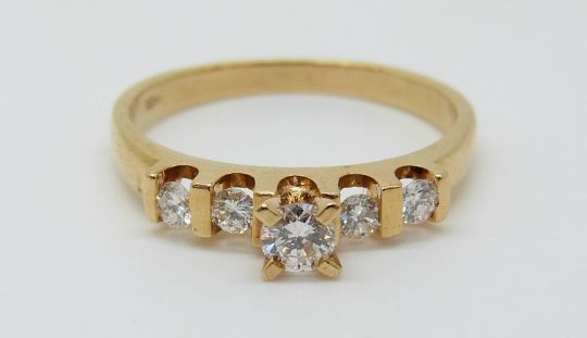An 18ct gold ring set with five diamonds, 2.87g (size N)