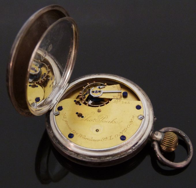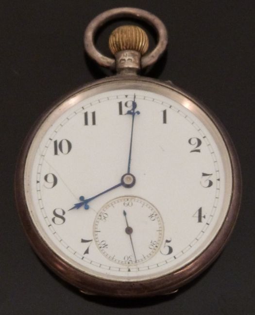 Hallmarked silver keyless winding open faced pocket watch with blued hands, subsidiary seconds dial and Arabic numerals, case diameter 48mm.
