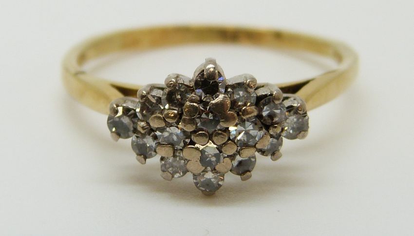 An 18ct gold ring set with diamonds, 2.79g (size O)