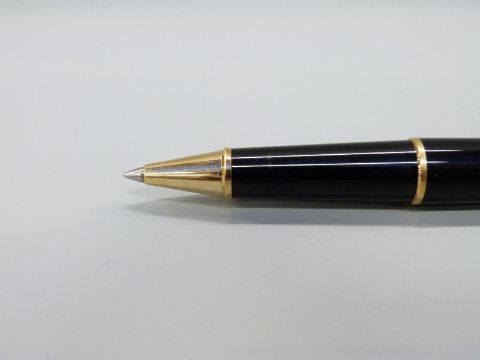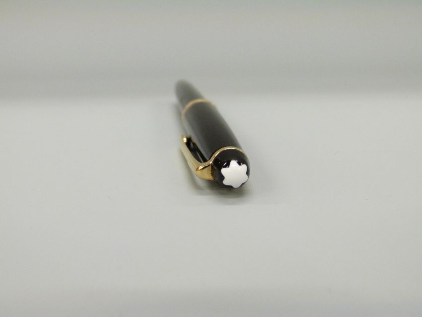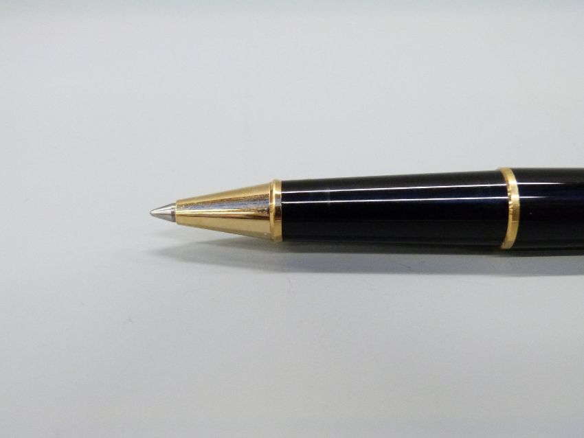Montblanc Meisterstuck Pix rollerball pen with black resin barrel and cap, gold platedfittings and white star cap, NVSN, 13.5cm long