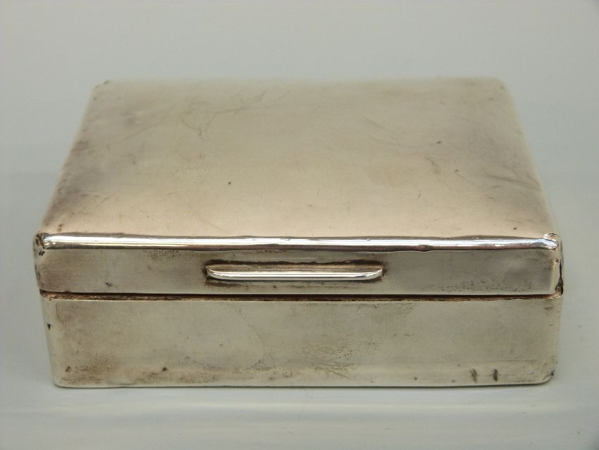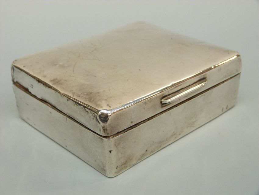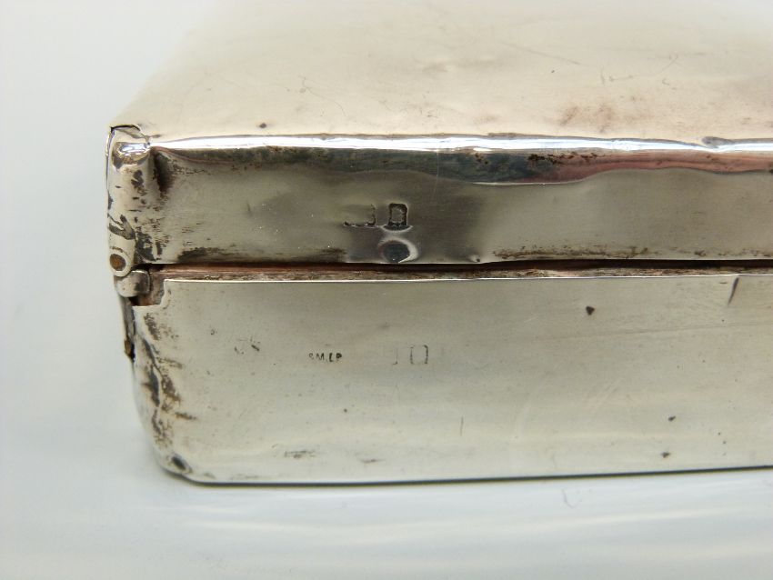A hallmarked silver cigarette box, marks rubbed, length 11cm