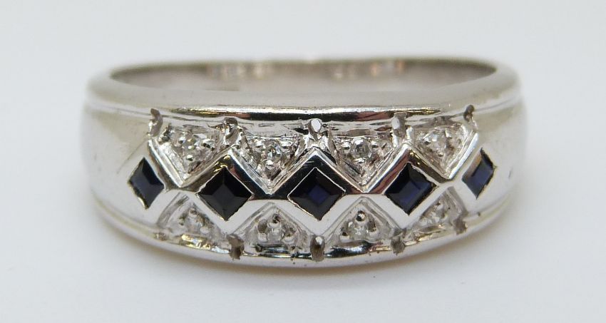 A 9ct white gold ring set with sapphires and diamonds (size N)