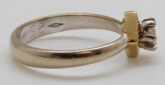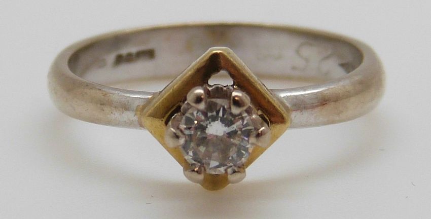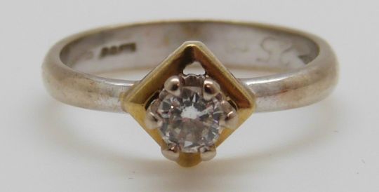 An 18ct white gold ring set with a round brilliant cut diamond of approximately 0.25ct in a square setting, 3.7g (size M)