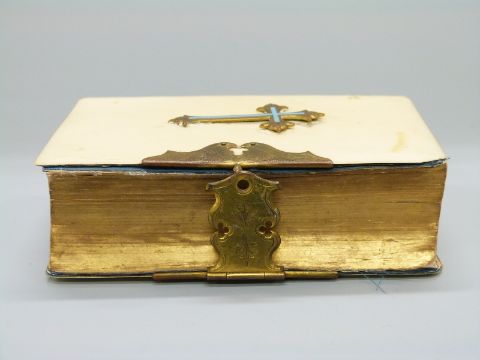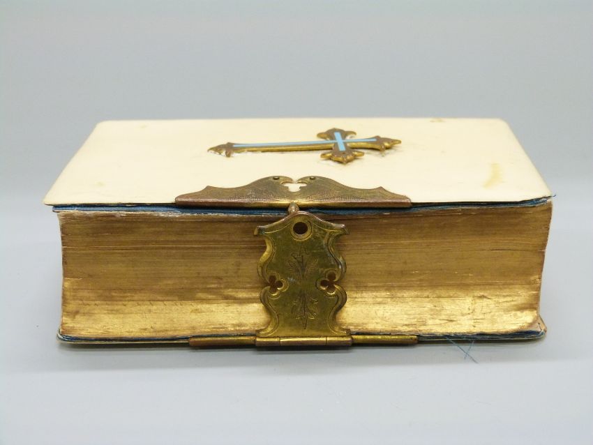 Ivory bound Book of Common Prayer with enamelled cross and brass clasp