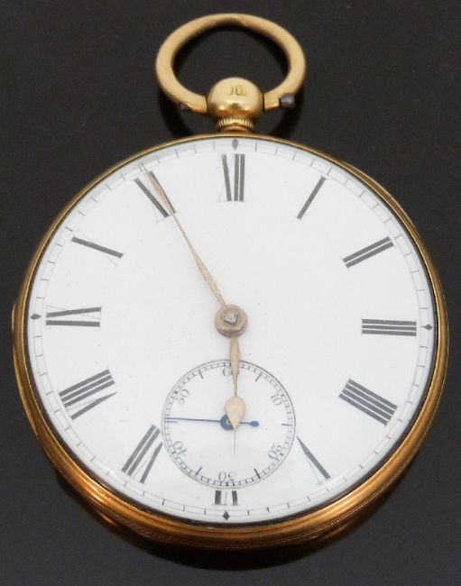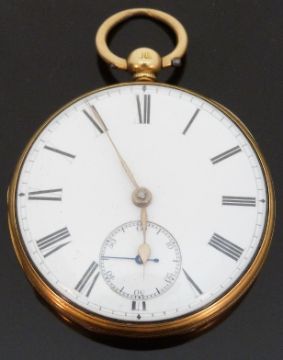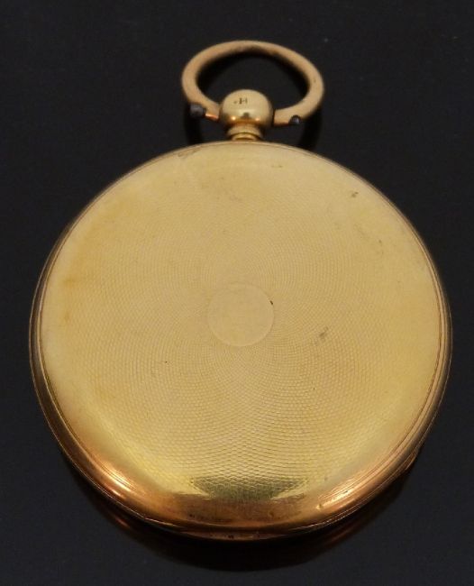 An 18ct gold gentleman's pocket watch with subsidiary seconds dial, gold hands, Roman numerals and white enamel dial, case diameter 48mm, 80.8g.
