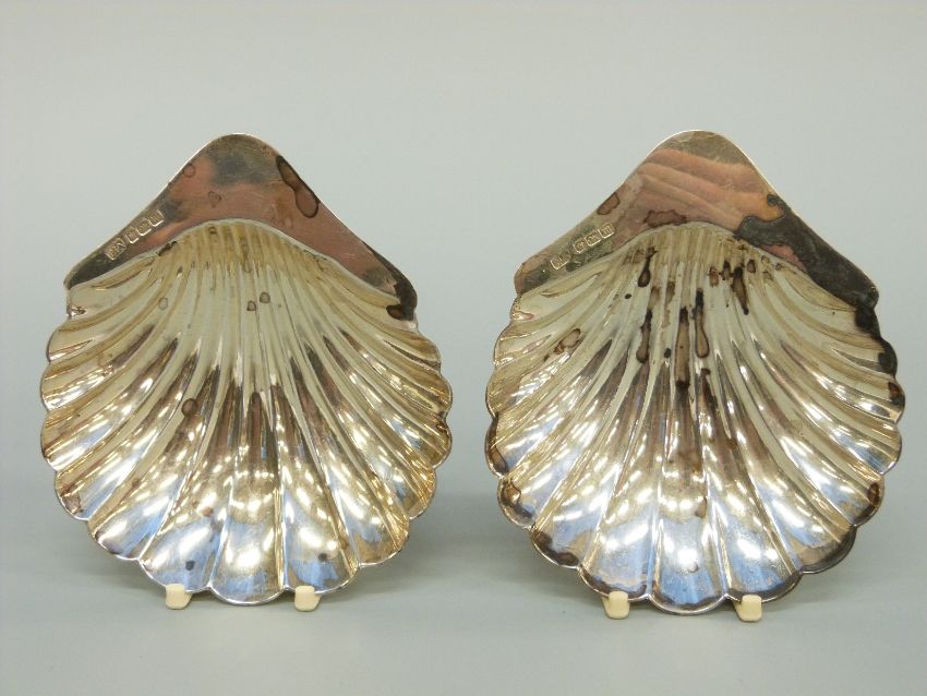 A pair of Edward VII hallmarked silver shell shaped three footed bonbon dishes, Sheffield 1904 maker Atkin Brothers, length 9.5cm, weight 71g