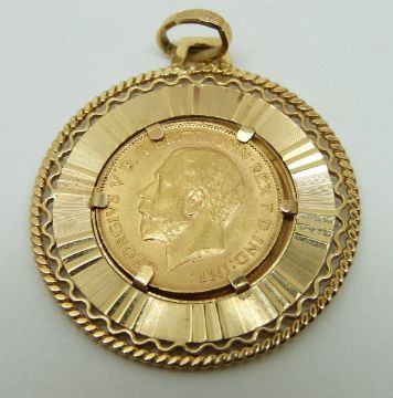 A 1913 half sovereign in a 14ct gold mount, 10.5g