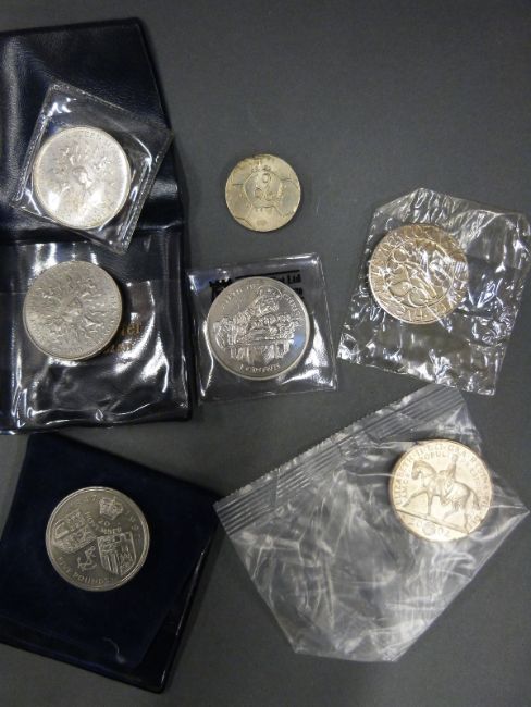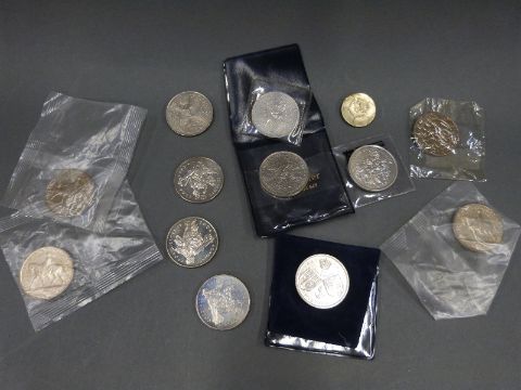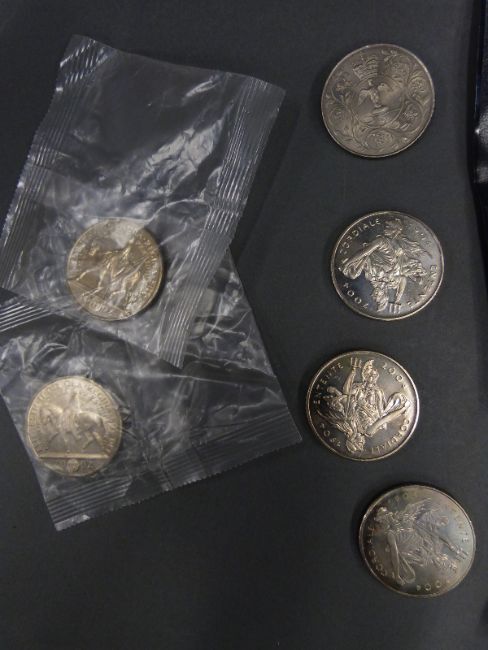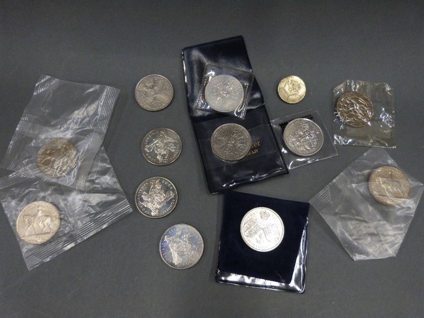 Eight various £5 commemorative crowns together with Isle of Man crown, various commemorative 25p crowns and a 1996 football £2.