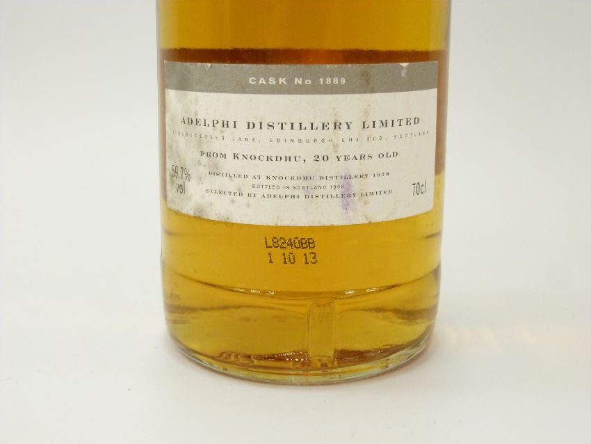Adelphi Distillery Knockdhu 20 year old single malt whisky 70cl 59.7% vol cask no 1889