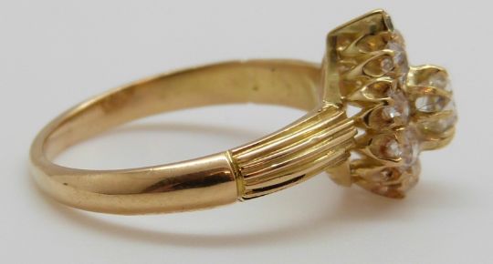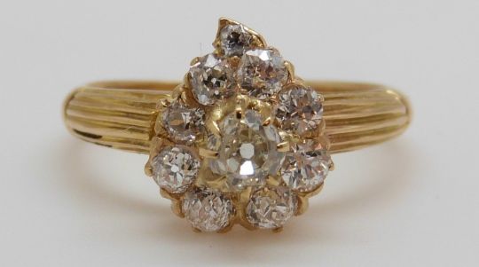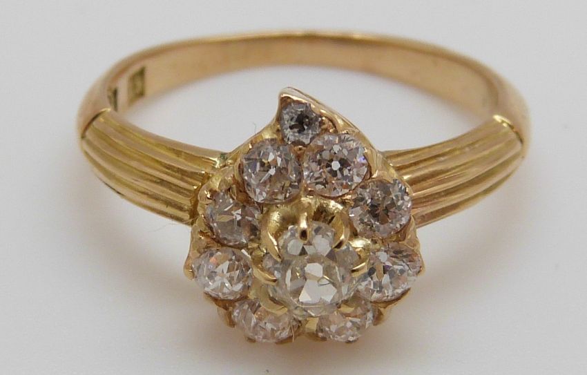 An 18ct gold Victorian ring set with old cut diamonds in the form of a heart, the centre diamond approximately 0.25ct (size O)
