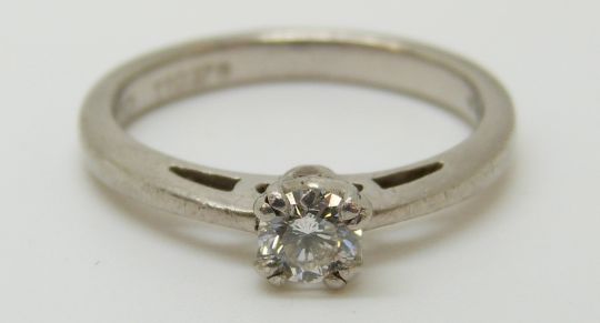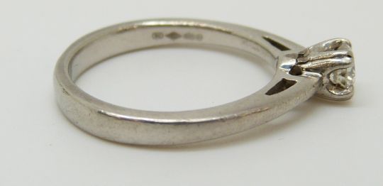 A platinum ring set with a diamond of approximately 0.28ct, 4.71g (size L)