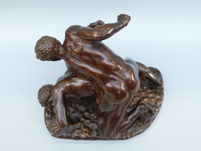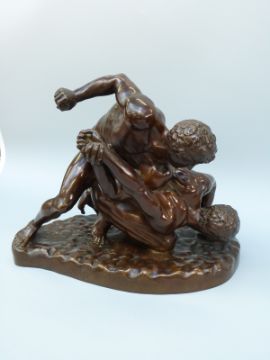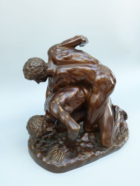 E Barbedienne bronze, 'The Wrestlers', after the Roman copy of the Ancient Greek original, signed to base E Barbedienne with foundry rondal32cm wide, 28cm tall
