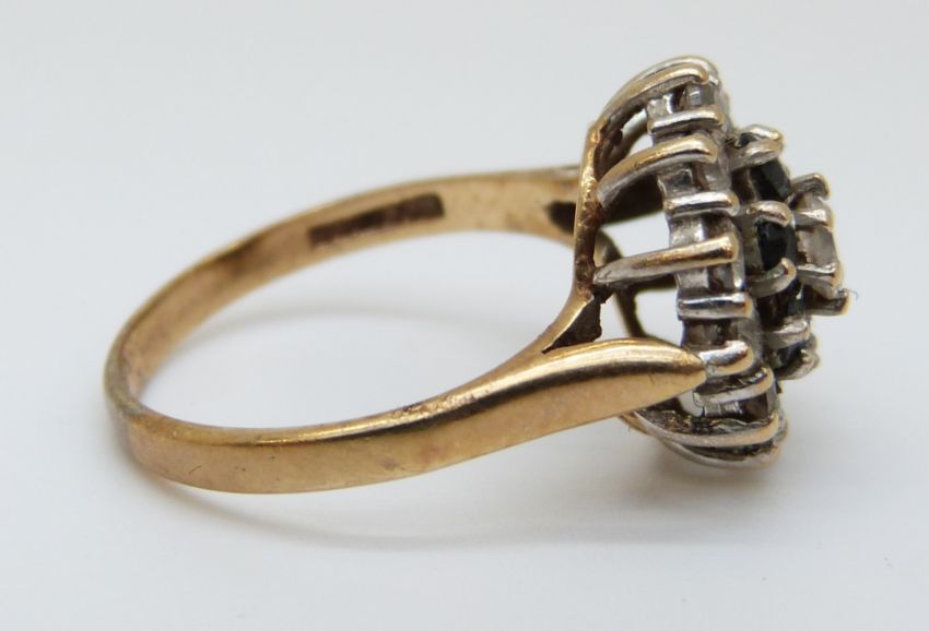 A 9ct gold ring set with sapphires and cubic zirconia (size L)