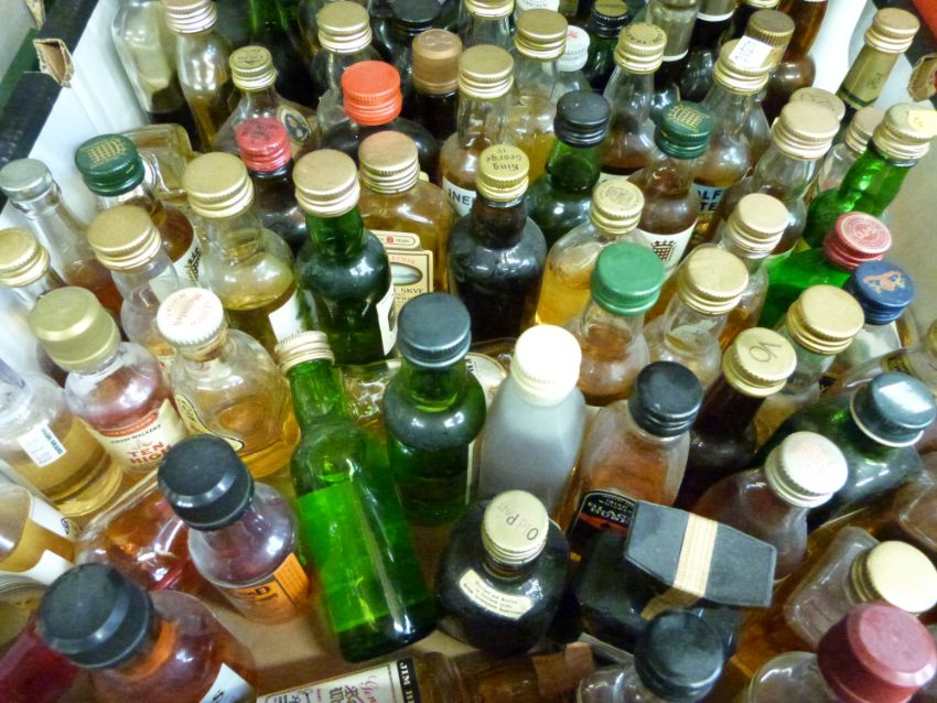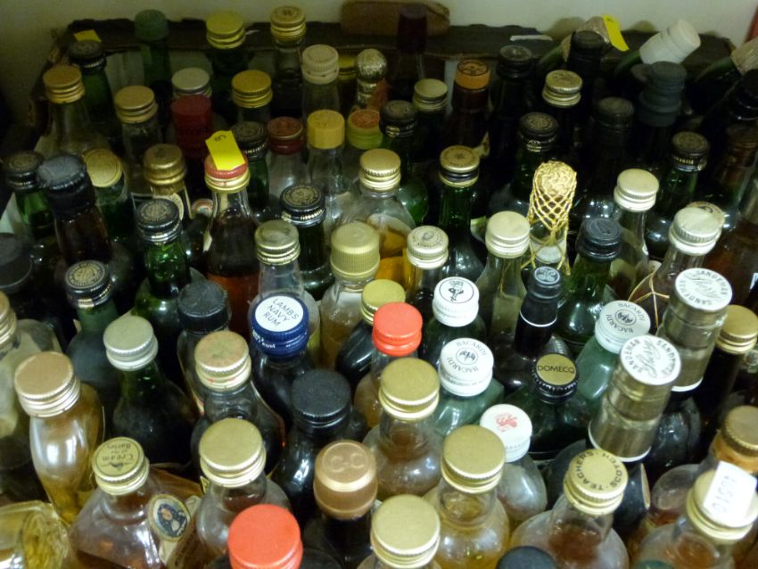Approximately 100 alcohol miniatures including Poit Dhubh 12 year old whisky, Grants Oban 12 year, various further whiskies, Lambs Navy Rum, Port including LBV, vodka etc