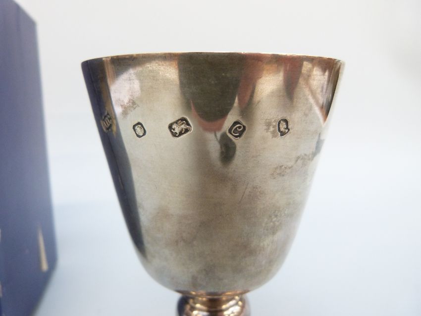 A limited edition feature hallmarked silver Jubilee goblet in box with certificate, height 13cm, weight 179g