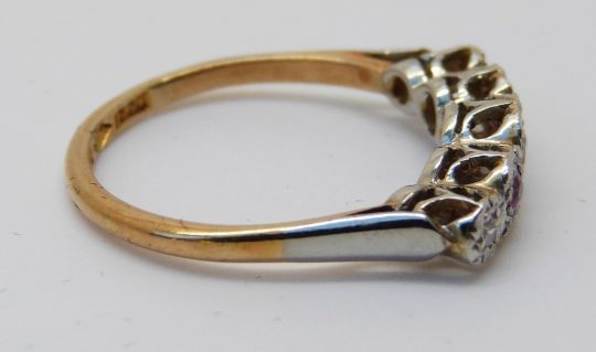 An 18ct gold ring set with rubies and diamonds in a platinum setting (size J)