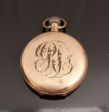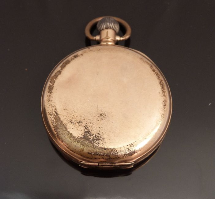 Waltham gold plated gentleman's keyless winding full hunter pocket watch with subsidiary seconds dial, Roman numerals, black hands and white enamel face, case diameter 50mm.