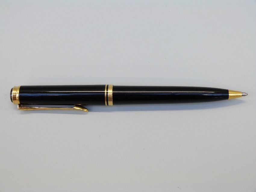Pelikan ballpoint pen with gold plated mounts and black body