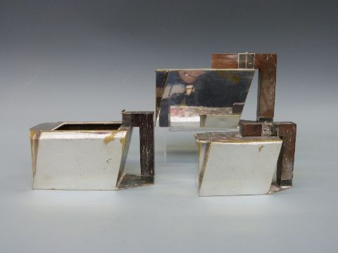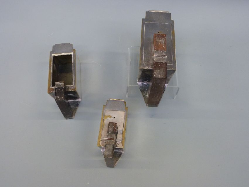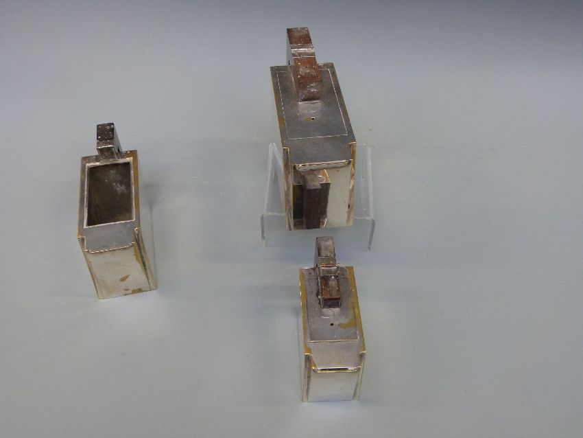 A plated three piece Desny Paris Art Deco tea set, believed ex Union Castle or similar shipping line