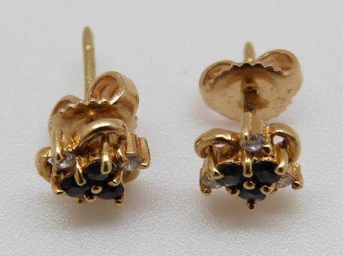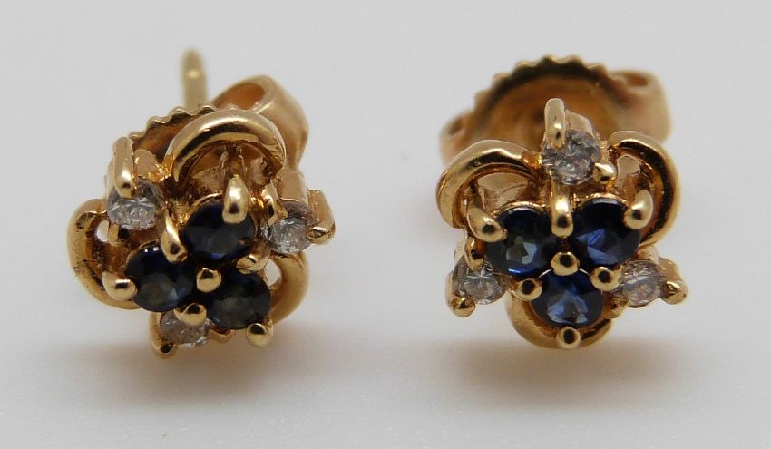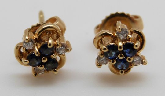 A pair of 18ct gold earrings set with sapphires and diamonds