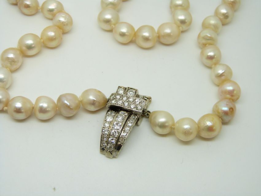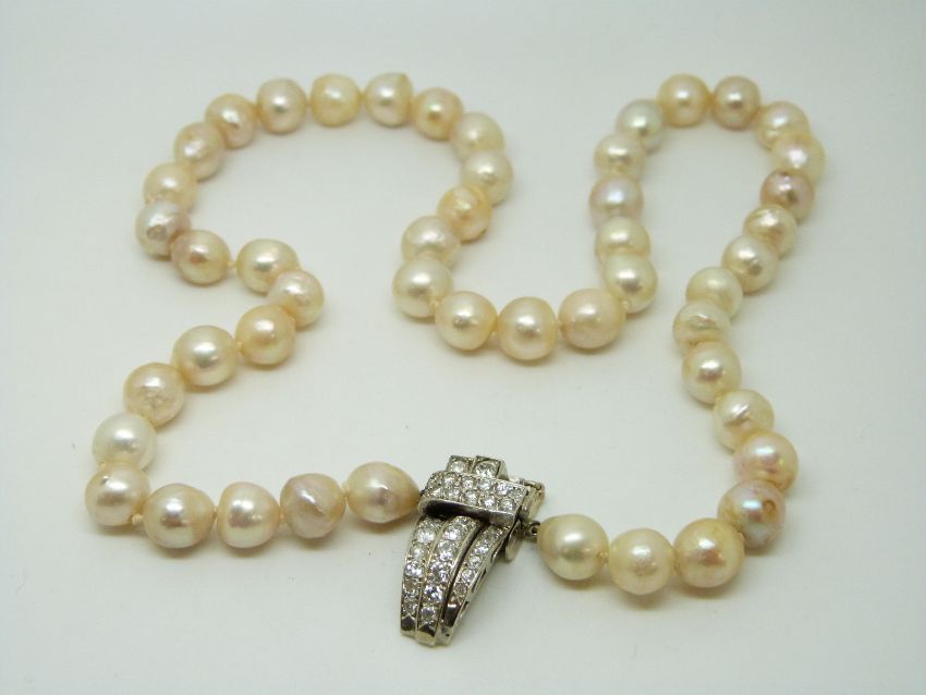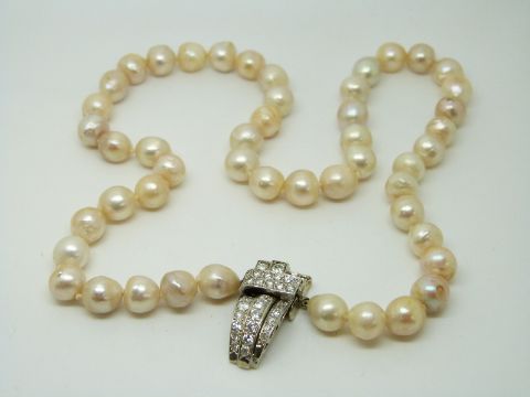 A single strand cultured pearl necklace with 18ct white gold clasp set with diamonds
