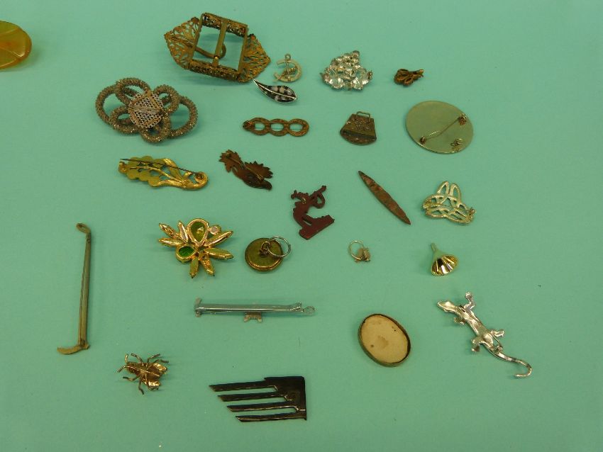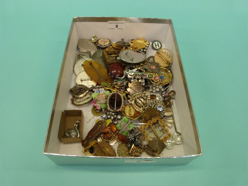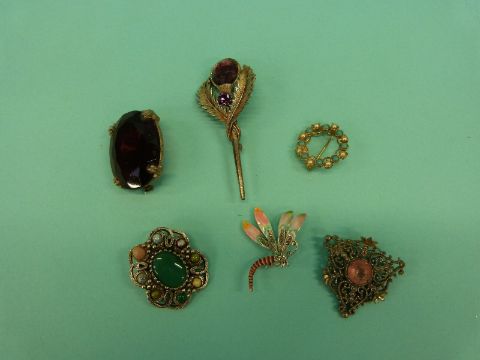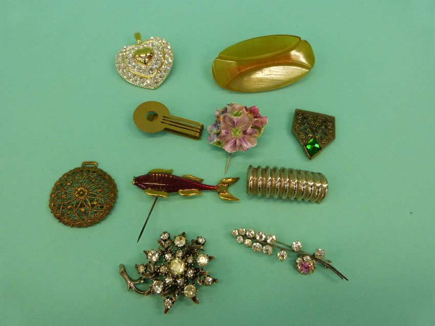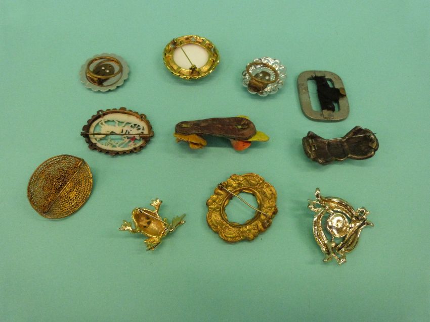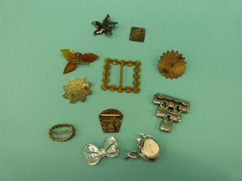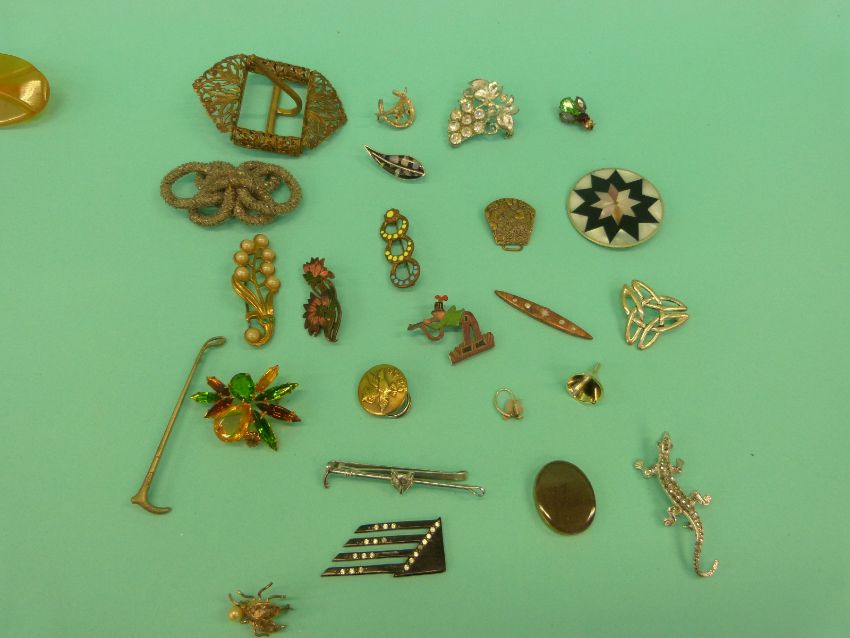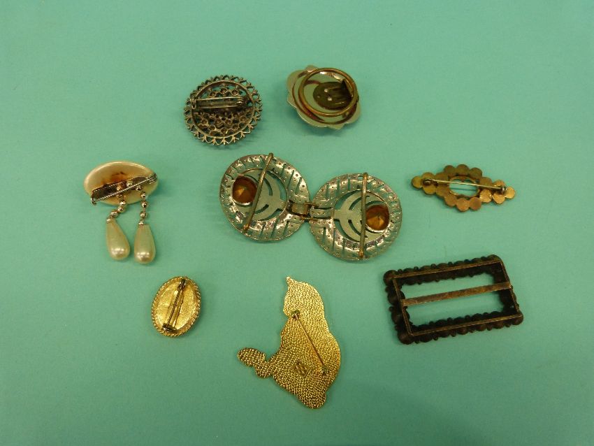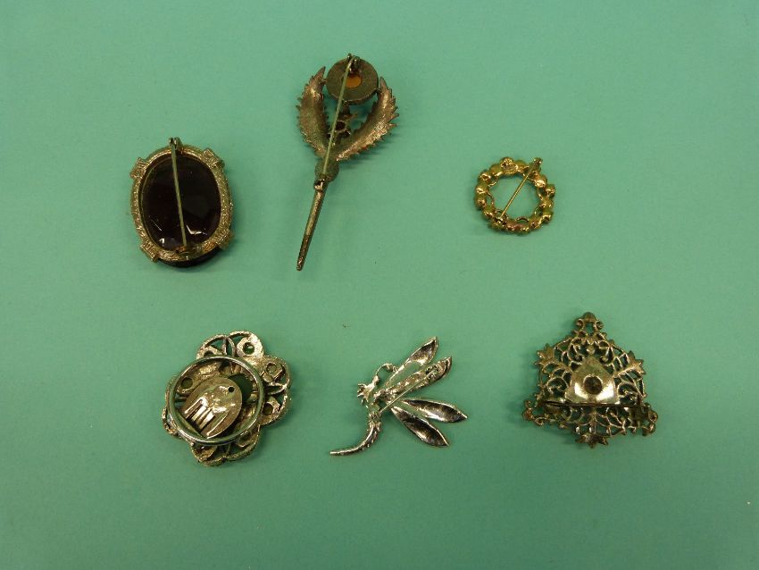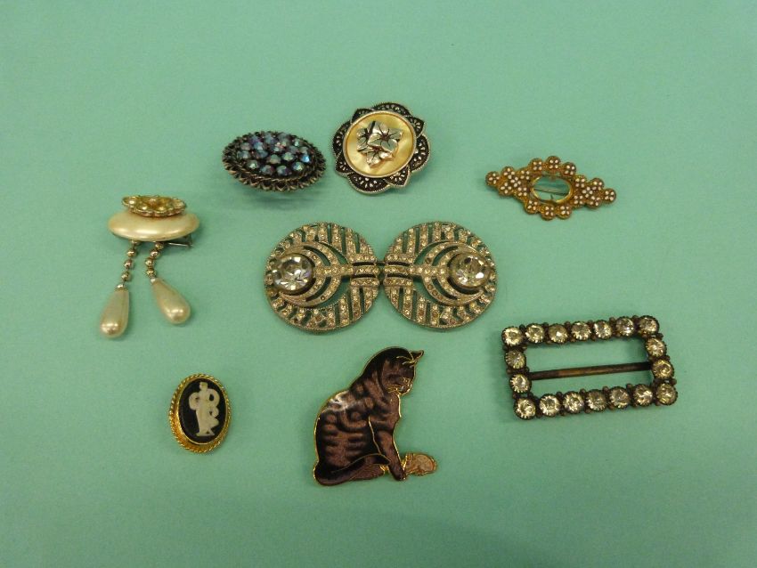 A collection of costume jewellery brooches to include thistle, vintage paste, Victorian etc
